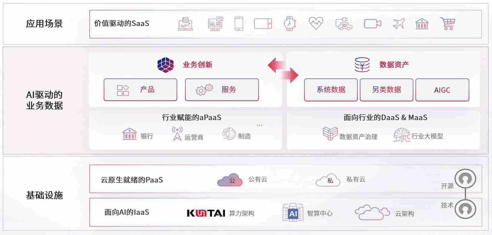 数字时代,,,,围绕企业数字化转型的关键要素,,尊龙z6数码开创性的提出数云融合战略和技术体系框架,,,,着力在云原生、、、数字原生、、AI原生和信创产业上架构产品和服务能力,,,,为处在不同数字化转型阶段的快消零售、、、汽车、、、、金融、、、、医疗、、政企、、教育、、运营商等行业客户提供泛在的敏捷IT能力和融合的数据驱动能力,,构建跨界融合创新的数字业务场景和新业务模式,,,助力企业级客户建立面向未来的核心能力和竞争优势,,,,全面推动社会的数字化、、智能化转型升级。。。。